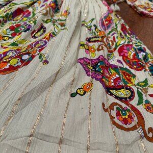 Style tags: boho, bohemian, anthropologie inspired, farm rio, maxi, long, flowy, goddess, princess, floral, cottagecore, modern, chic, gorgeous, beautiful, metallic, eye-catching