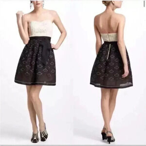 NWT Anthropologie Meadow Rue Womens 8 Lace Dress Black Ivory Strapless