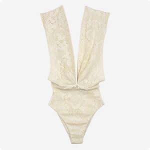 NWT Anthropologie Mes Demoiselles Fanti Plunging V Lace Bodysuit in Ecru XS - SM
