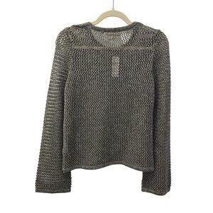 NWT Anthropologie Metallic Open Knit Crewneck Bell Sleeve Sweater Size Medium