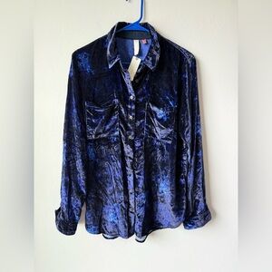 NWT Anthropologie Midnight Blue Velvet Button Down Shirt