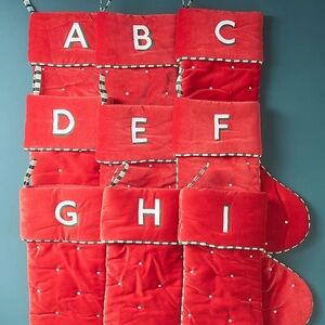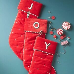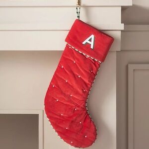 Elevate your holiday decor with this luxurious Anthropologie velvet stocking, featuring a sophisticated monogram that adds a personal touch to your seasonal celebrations. The plush material ensures this stocking isn't just for decoration but also serves as a cozy companion for your loved one's holiday essentials.
