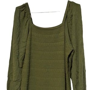 NWT Anthropologie Moss Green Smocked Puff-sleeved Midi Dress Sz XL