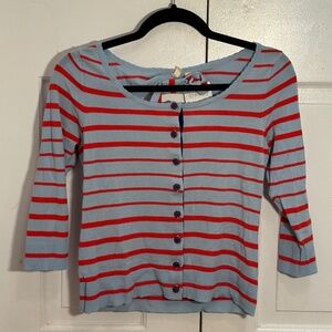 NWT Anthropologie Moth Cardigan Sweater Size S Blue and Orange Stripe