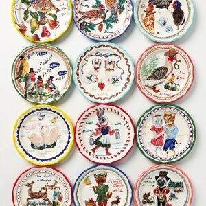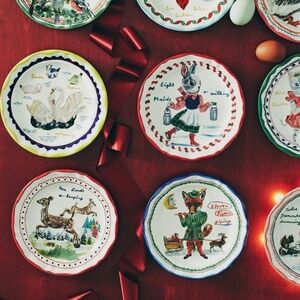 Designed by Nathalie Lete in collaboration with Anthropologie, this dessert plate offers an illustrative re-imagination of a classic Christmas carol.