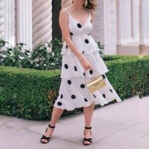 NWT Anthropologie O.P.T. Polka Dot Tiered Midi Dress Size Large
