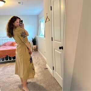 I love this super pretty new with tags designer Anthropologie Ottod'Ame cream black floral embroidered elbow length button front maxi dress
