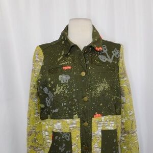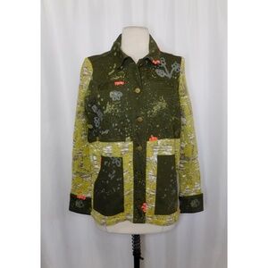 Orange embroidered phoenix on the back of multi-green colored button up sweater jacket. NWT!