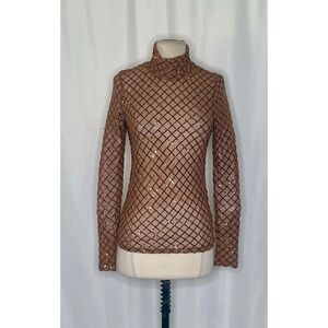NWT!! Anthropologie PILCRO Turtleneck Sequin Top Shirt Bronze Party Glam X-Small