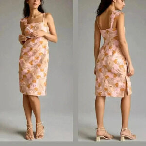 NWT Anthropologie Pastel Pink Floral Appliqué Midi Party Event Dress Size 8