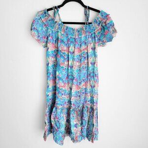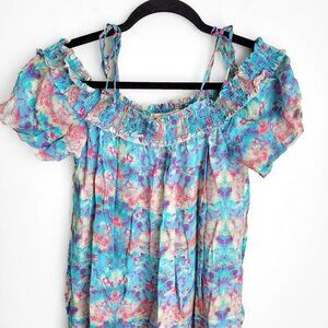 Anthropologie Pepin Willa Watercolor Ruched Shoulder Boho Mini Dress