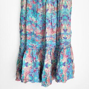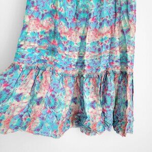 Tags: women's vintage ruffled tiered smocked watercolor tie dye boho bohemian raw flowy chic elegant cocktail party