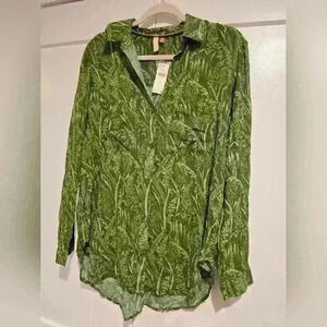 NWT Anthropologie Pilcro Green Patterned Button-Down Shirt Size Small