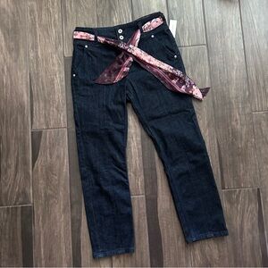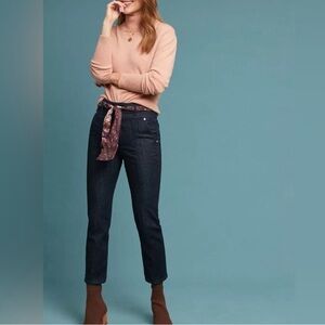 NWT Anthropologie Pilcro High Rise Slim Straight Jeans Dark Wash w/ Sash Sz 29