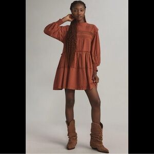 NWT Anthropologie Pilcro Long Sleeve Mock Neck Swing Tiered Mini Dress Medium
