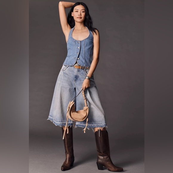 NWT Anthropologie Pilcro Pleated Culotte Wide-Leg Denim Shorts, Size 27