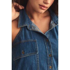 NWT Anthropologie Pilcro Sleeveless Halter Swing Midi Dress 1X Denim Blue Jean