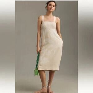 NWT Anthropologie Pilcro Sleeveless Square-Neck Linen Midi Dress Size L #NC415