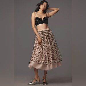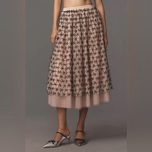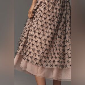 NWT! Anthropologie Pink & Black Maeve All-Over Bow Tulle Midi Skirt -Size XS
