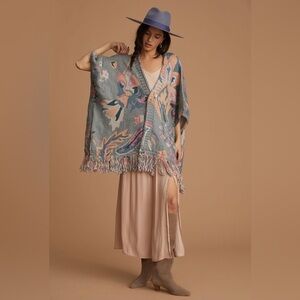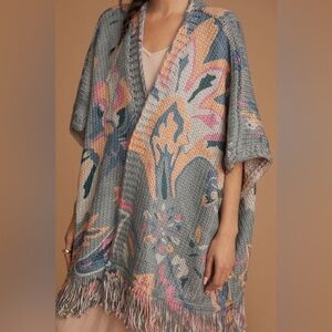 By Anthropologie SAACHI elora knit tassel kimono grey blue