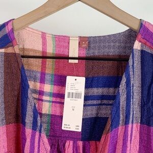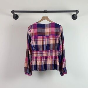 NWT Anthropologie Plaid Deep V-Neck Gauzy Cotton Blouse