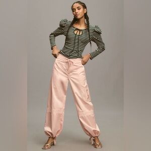 NWT Anthropologie Porridge Puff-Sleeve Tie-Front Top in Green, XXS