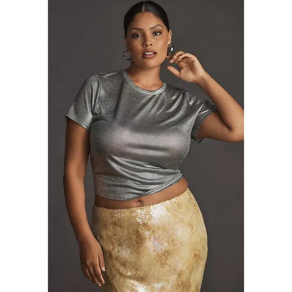 NWT Anthropologie Porridge Shine Glam Tee Metallic Graphic Top Women’s Medium