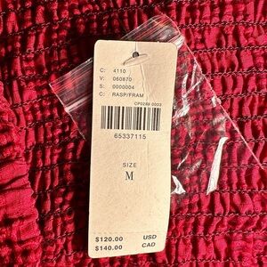 NWT Anthropologie Raspberry Red Square Neck Shirt W/Poet Sleeves Size M