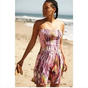 NWT Anthropologie Reversible Smocked Tie Front Sundress in Purple Motif Size Medium