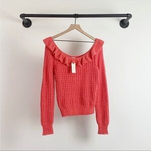 NWT Anthropologie Ruffled Knit Boatneck Sweater in Pink