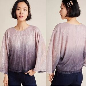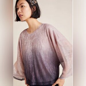 NWT Anthropologie Serena Metallic Ombre Long Sleeve Top Blouse Size Small