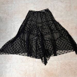 Chic sheer black maxi skirt with polka dot design. Flowy and stylish for any occasion.Gothiccore