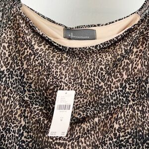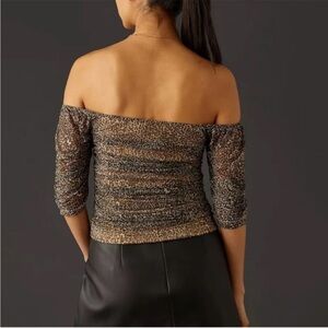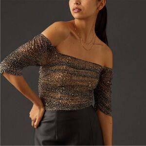NWT Anthropologie Shirred Mesh Off Shoulder Top Animal Print