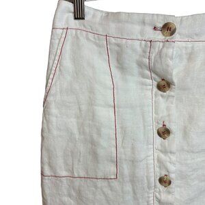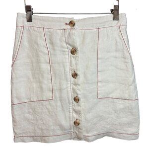 Anthropologie Amadi Jupe Button Front Linen Mini Skirt White Red Women's Size XS
