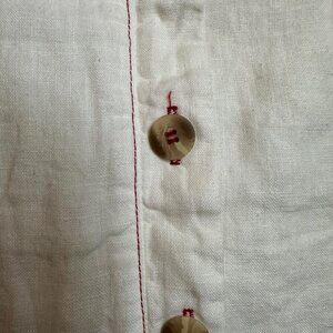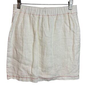 This Anthropologie Amadi Jupe mini skirt in white and red trim is a chic addition to any wardrobe. Crafted from breathable linen, it's designed with a trendy button front and suited for women's size XS.