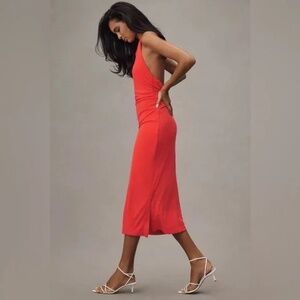 NEW with Tags By Anthropologie Slinky Knit Halter Dress-Cherry Tomato