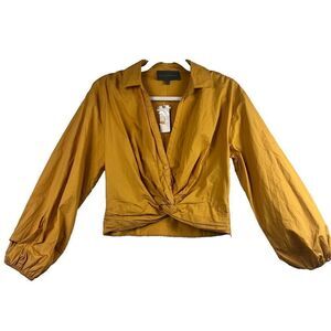 NWT Anthropologie Sunday in Brooklyn Twist Cropped Shirt Blouse Gold Size Small