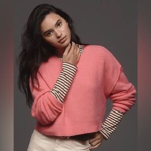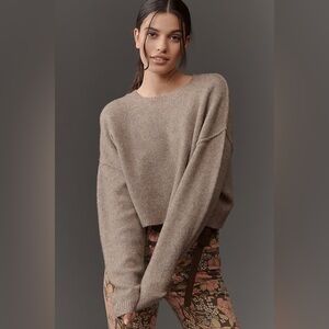 NWT! Anthropologie Taupe Pilcro Cropped Crew-Neck Oversized Sweater 💚