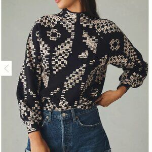NWT Anthropologie The Beatriz Mock-Neck Sweater navy blue cream Women's XL