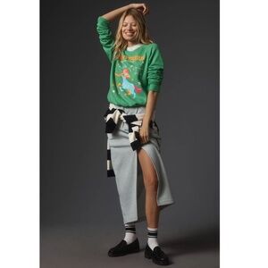 Channel your cosmic energy with this stunning Carolita Zodiac Sweatshirt from Midnight Rider, sold by Anthropologie. Featuring beautifully illustrated Sagittarius-themed graphics in bold pink, blue, and sunny yellow on a rich green backdrop, this sweatshirt combines celestial charm with Anthropologie’s signature cozy-chic style.