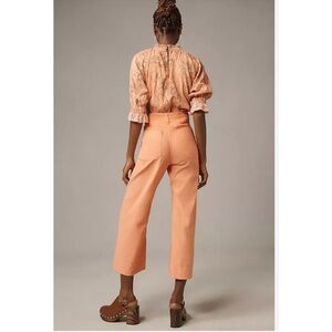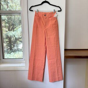 NWT Anthropologie The Colette Linen Cropped Wide Leg Pants Maeve Orange 24T TALL