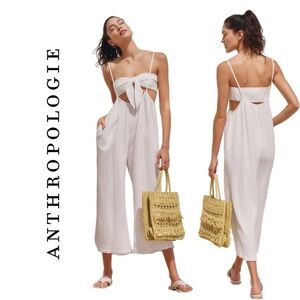 NWT! Anthropologie The Kallie Flowy Suspender Set in Ivory - Size Medium 🏀