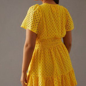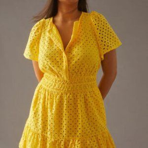 NWT Anthropologie The Somerset Mini Dress Eyelet Edition XL Yellow Mini