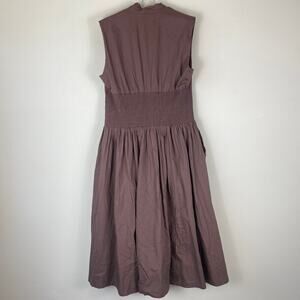Anthropologie The Tommie Cap Sleeve Smocked Front-Zip Shirt Dress Brown- 1X