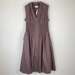 NWT Anthropologie The Tommie Cap Sleeve Smocked Front-Zip Shirt Dress Brown- 1X