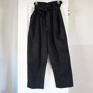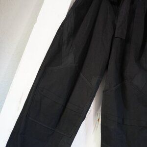 Barrel type style larger in the mid leg area and then tapers down measurements in photos