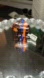 Stylish tortoise shell hair clip featuring bold blue and orange accents. Perfect for adding a pop of color to your hairstyle.