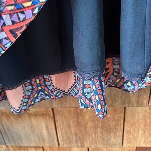Brand new with tags and never worn! Beautiful Tribal Print Anthropologie Maxi Skirt by Maeve in Women's X-Small. Feminine and playful gathered skirt features an elastic smocked waistband with black drawstring, fully lined, and two side pockets. Easy Care.