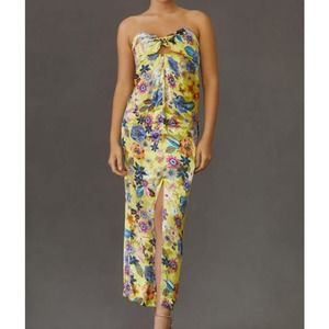 NWT! Anthropologie Twist-Front Midi Dress YELLOW MOTIF SIZE-SMALL
