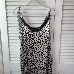 NWT Anthropologie V-Neck Open-Back Slip Midi Dress Lace Animal Print Medium